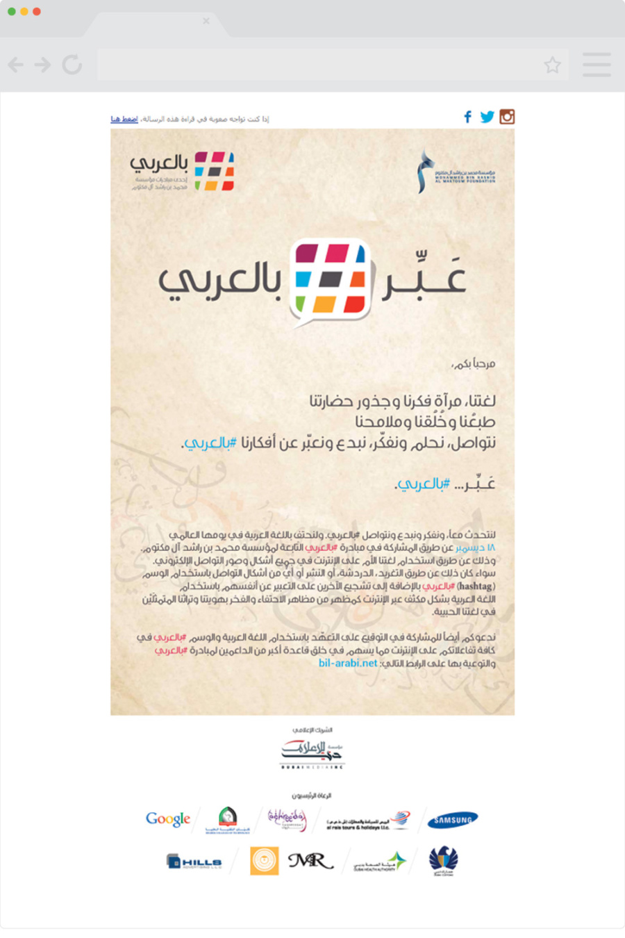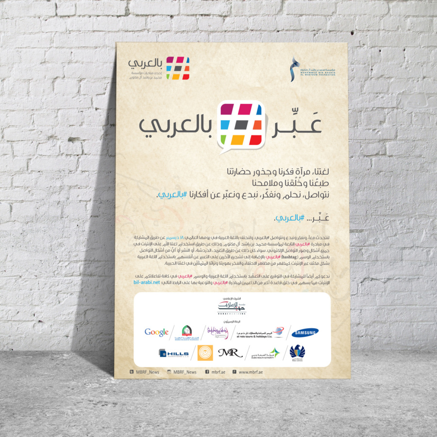 An initiative launched by the Mohammed bin Rashid Al Maktoum Knowledge Foundation in 2013 with the aim of encouraging Arabs to use their mother tongue via the Internet and social media channels, and to contribute to the development of the knowledge role of the Arabic language in the international community in general and the Arab community in particular.
