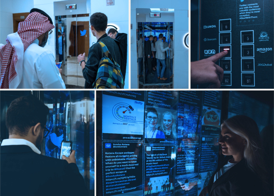 February 3rd 2019 – marked the launch of Twitter’s new global identity #StartWithThem in MENA through a region-first activation that turns the everyday work journey into an educative experience, and connects businesses with their most valuable audiences when they’re most receptive. The #ElevatorTweets utilized state-of-the-art technology to create an interactive experience of rich media and video, which will appear on the wall of the elevator. Every office floor opens the doors to a map of what’s happening in KSA relevant to the business of the organization.